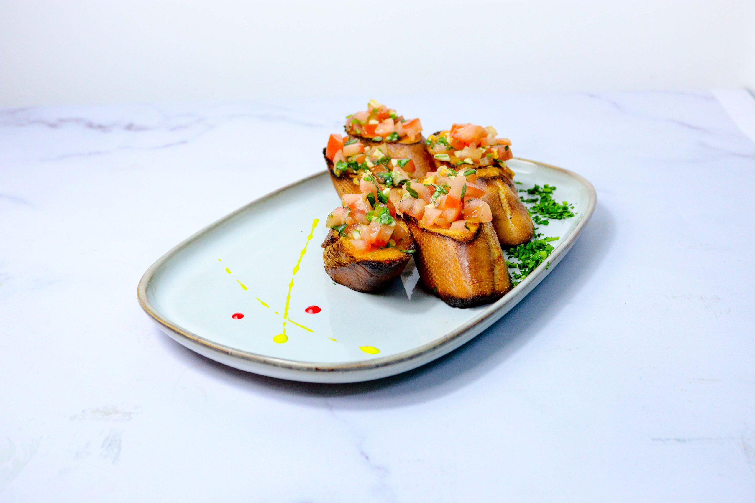 Rosii, busuioc si usturoi pe paine prajita / Tomatoes, basil and garlic on toast